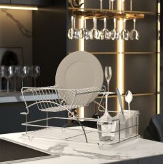 Geseus Home İki Katlı Tabaklık Bulaşıklık Krom Şeffaf KB009